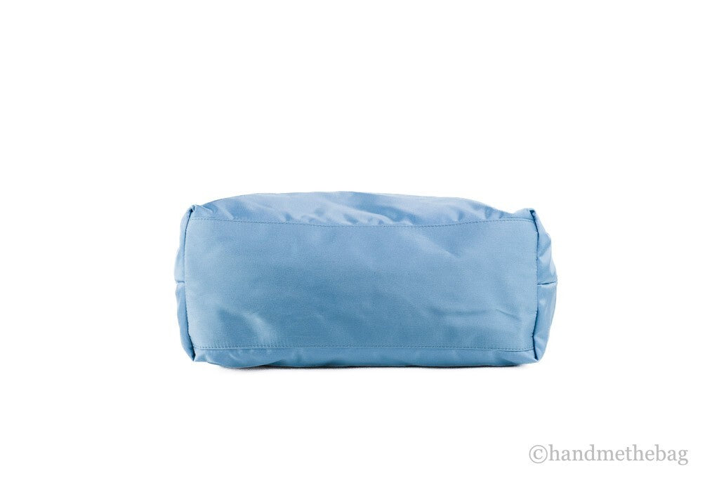 Versace Portuna Medusa Medium Cornflower Blue Nylon Leather Tote Bag Purse